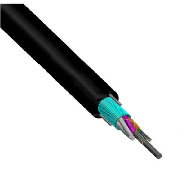 The fibers, ∅250µm colored fibers, are positioned in a loose tube made of a high modulus plastic. The tubes are filled with a water-resistant filling compound. A Fiber Reinforced Plastic (FRP) locates in the center of core as a non-metallic strength member. Tubes (and fillers) are stranded around the strength member into a compact and circular cable core. After the cable core is filled with the fillig compound to protect it from water ingress, the cable is protected by a layer of corrugated steel tape, two pareallel steel wires are placed at the two sides of the steel tape, finally the cable is completed with a PE sheath.